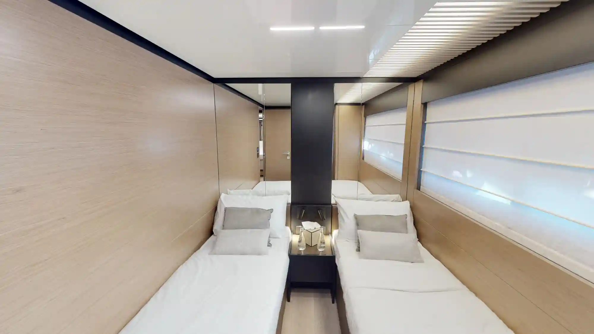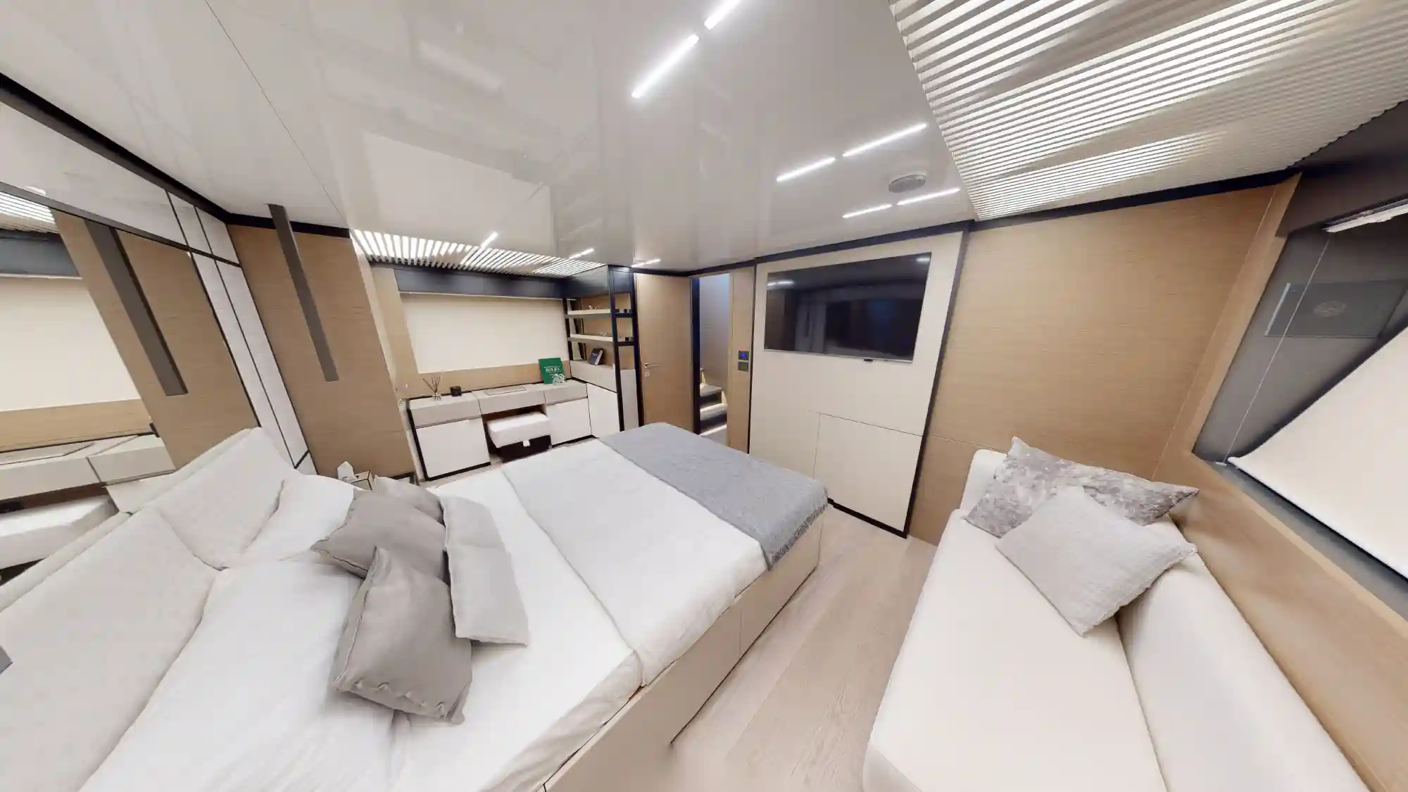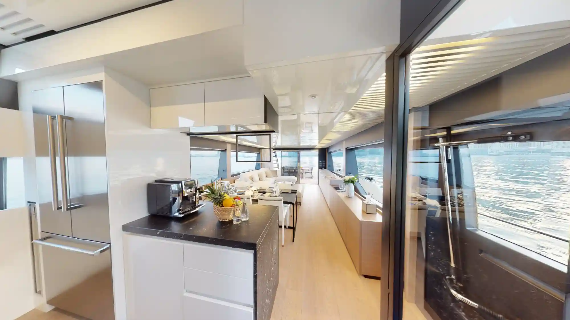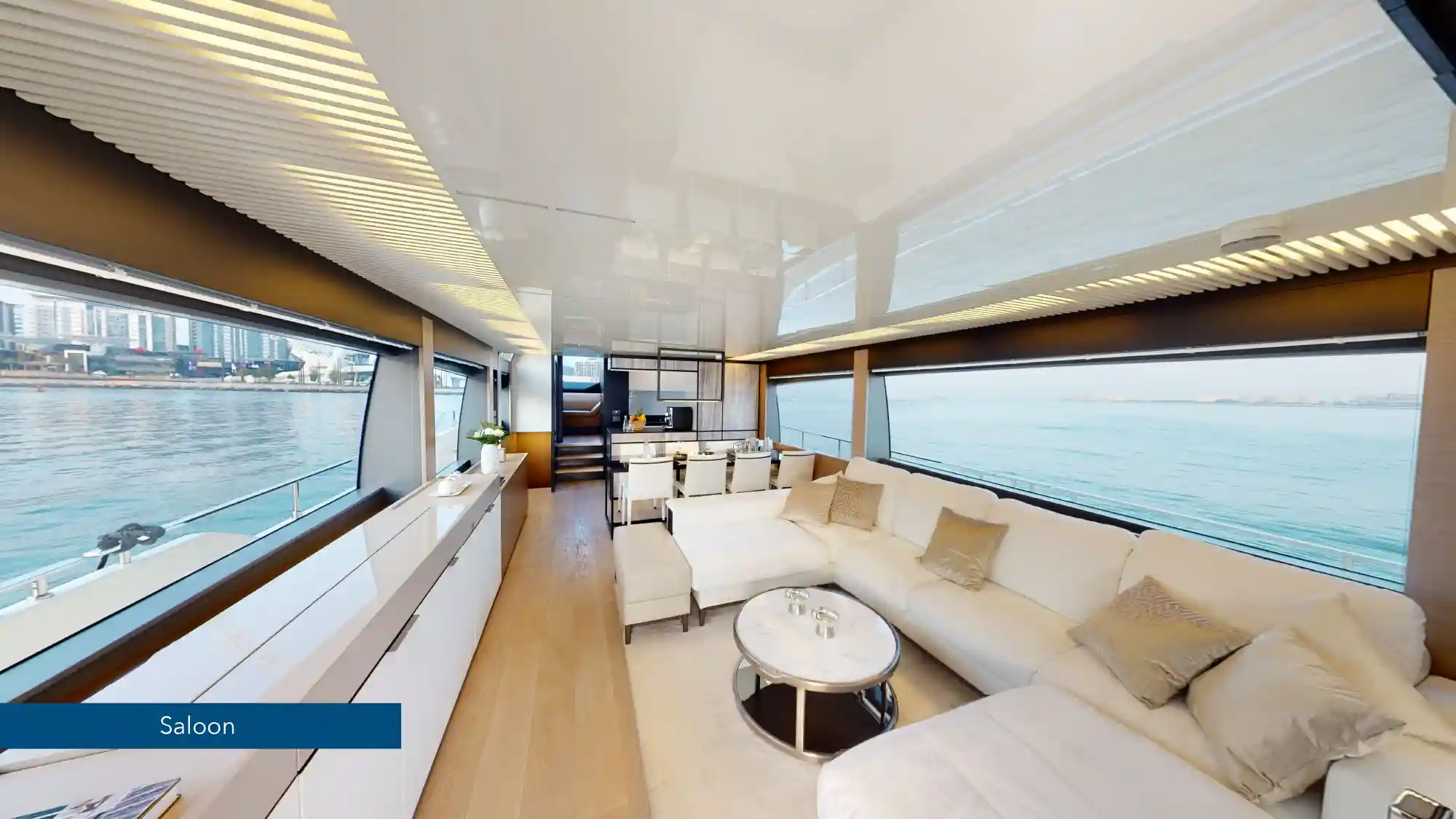 The premium Ferretti 78ft yacht, built in 2019, is available for rent in Dubai, UAE. It features 4 rooms, can accommodate up to 20 guests, and is operated by 3 professional and experienced crew members. Barbecue service is permitted onboard, with equipment available upon prior request. The Ferretti 78 is offered for rental at 5,000 AED per hour in Dubai.