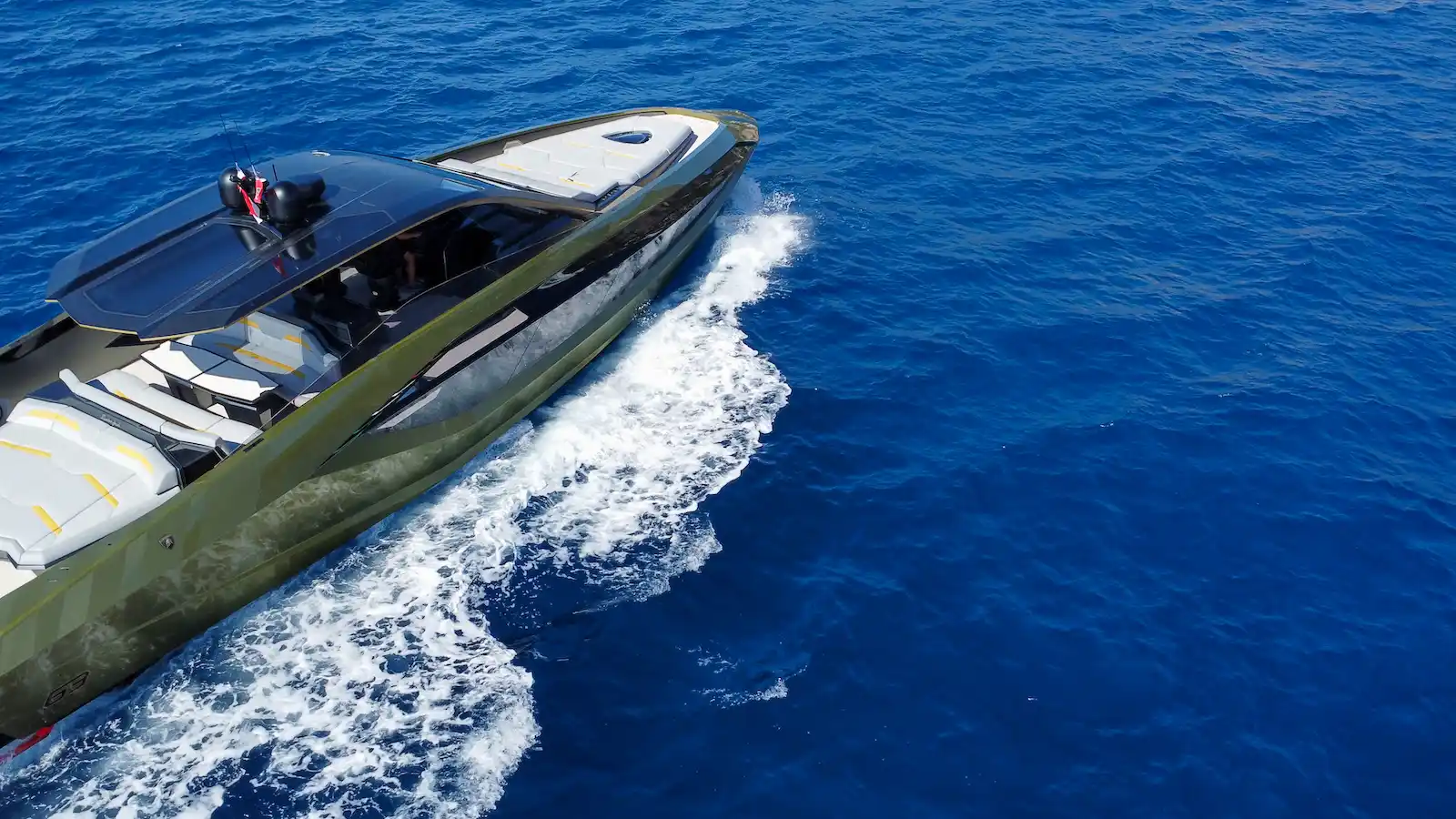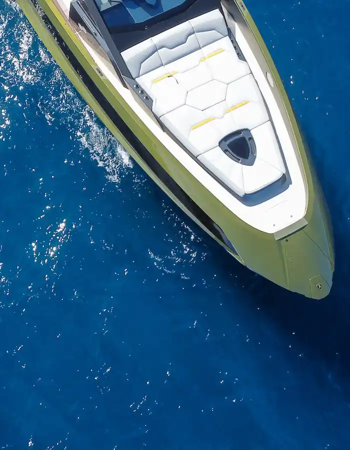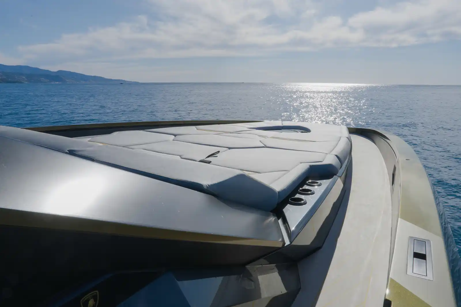 The Lamborghini 63 is a visual marvel, taking design cues from Lamborghini’s iconic supercars, such as the Sián FKP 37. Its sleek, angular lines, aggressive contours, and aerodynamic structure make it a standout vessel on Dubai’s stunning coastline. The unmistakable Y-shaped bow lights and sharp edges mirror Lamborghini’s futuristic car designs, giving the yacht a bold presence that turns heads wherever it sails.