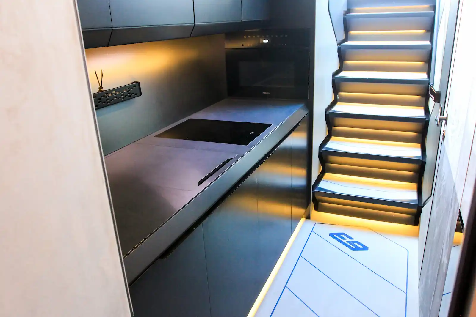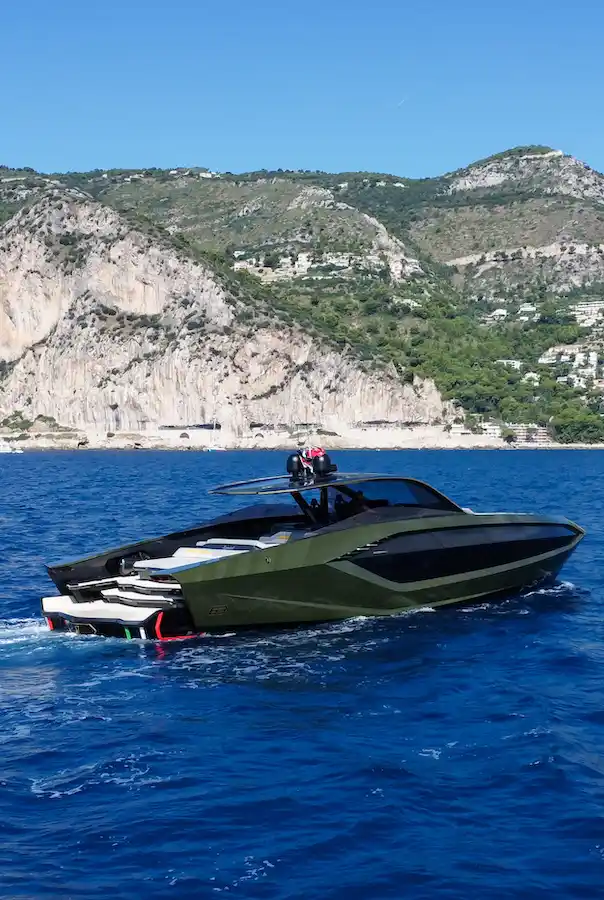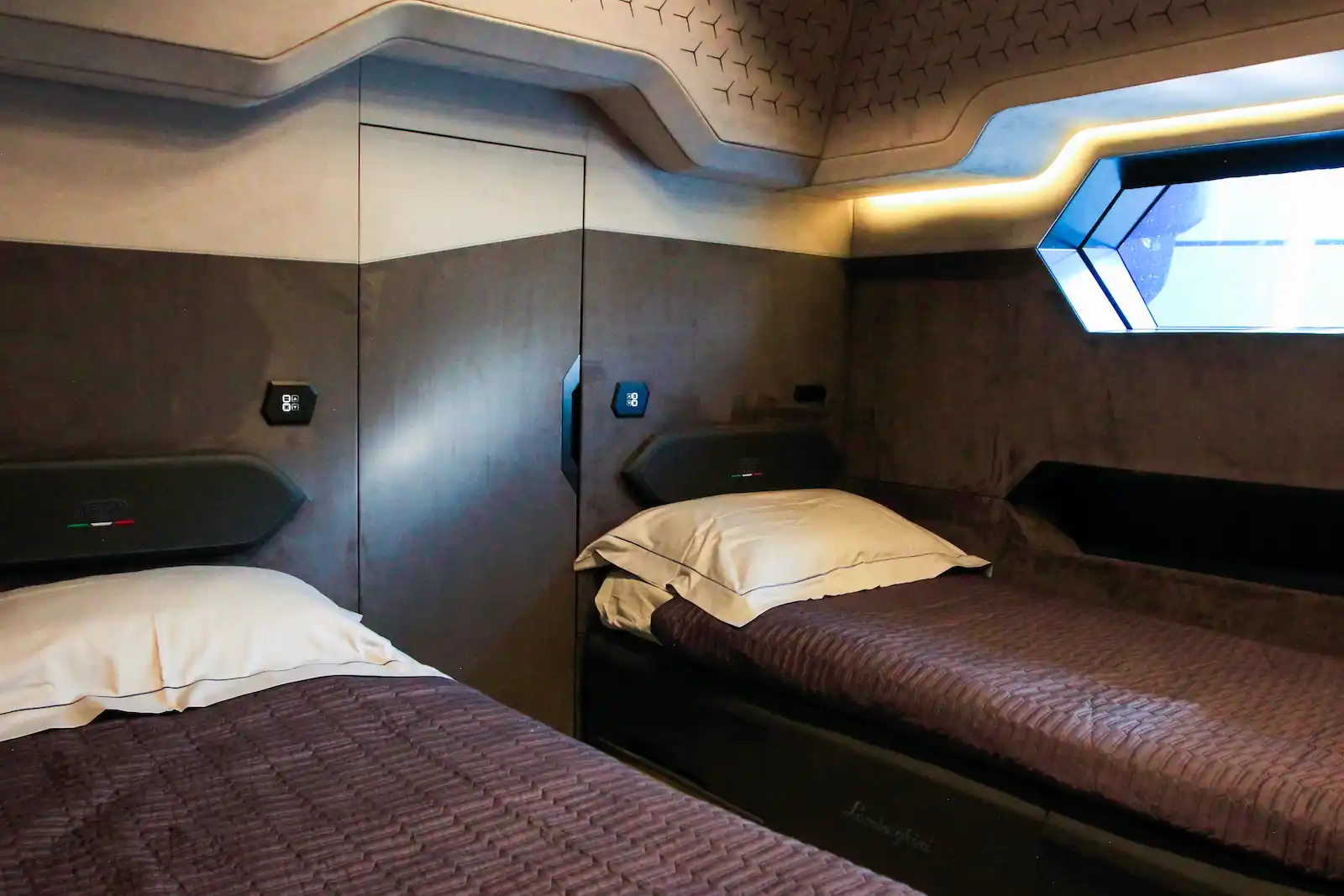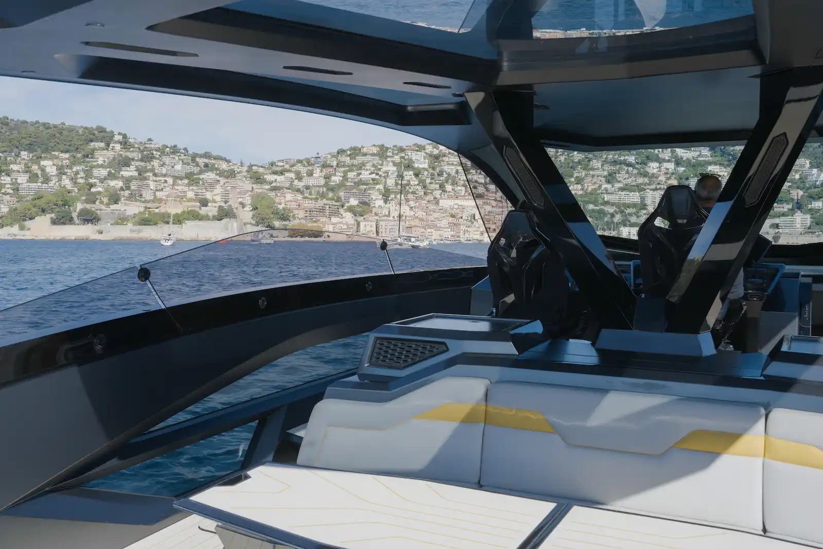 The Lamborghini 63 is a visual marvel, taking design cues from Lamborghini’s iconic supercars, such as the Sián FKP 37. Its sleek, angular lines, aggressive contours, and aerodynamic structure make it a standout vessel on Dubai’s stunning coastline. The unmistakable Y-shaped bow lights and sharp edges mirror Lamborghini’s futuristic car designs, giving the yacht a bold presence that turns heads wherever it sails.